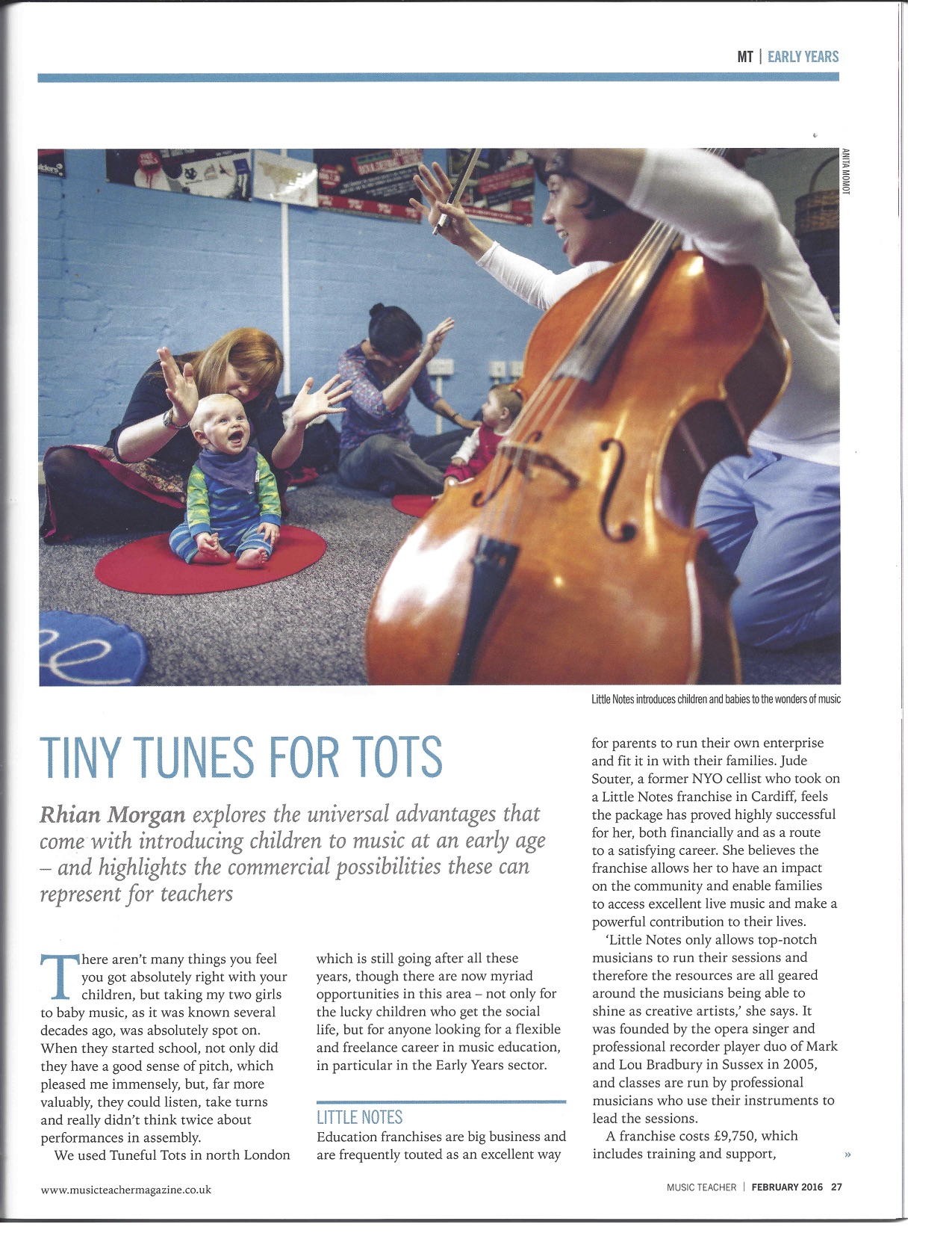 Little Notes on the cover of Music Teacher Magazine: February 2016